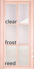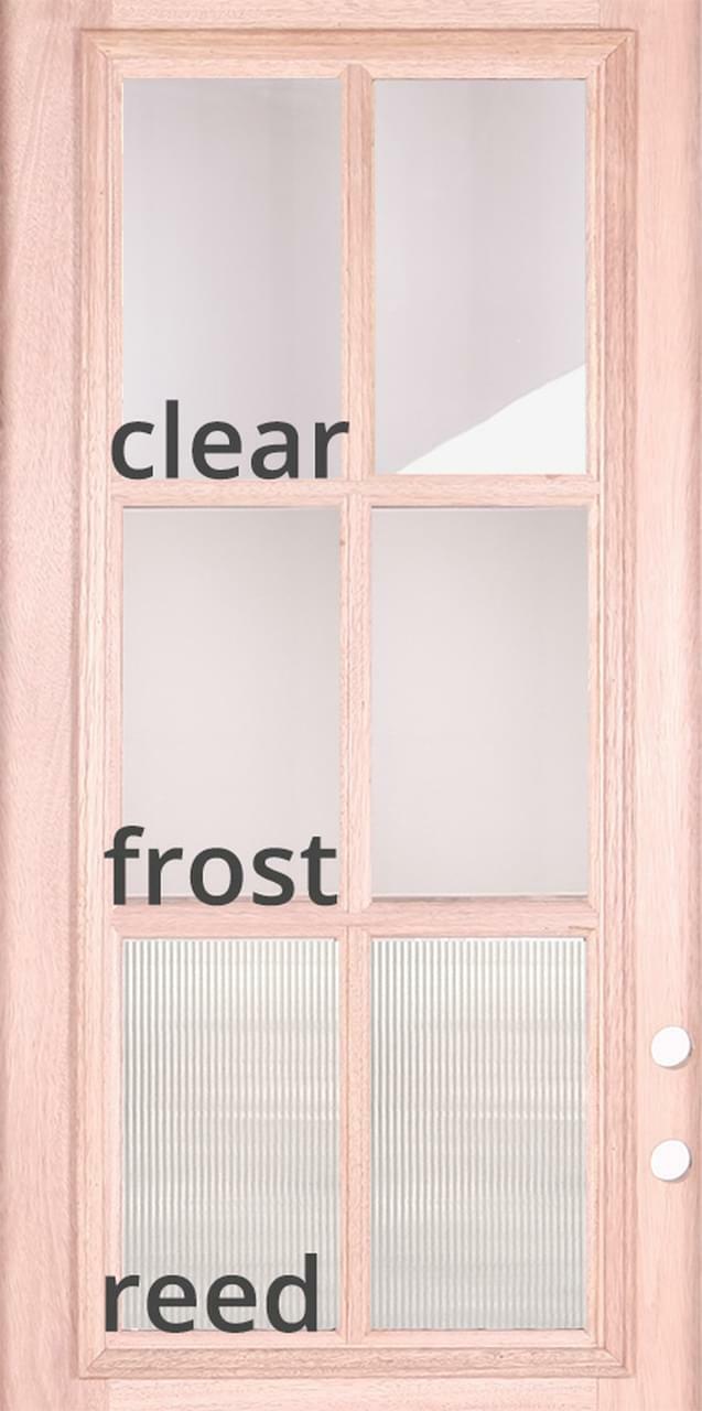 La puerta cuenta con tres opciones de vidrio: transparente o esmerilado. Estas opciones de vidrio ofrecen distintos grados de privacidad y transmisión de luz, lo que le permite seleccionar la opción que mejor se adapte a sus preferencias. El marco de caoba está incluido con la puerta, lo que mejora su durabilidad y atractivo estético.