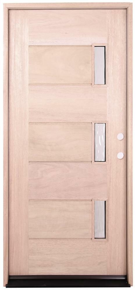 Puerta de entrada precolgada de caoba de 3 pies x 6 pies 8 pulgadas con vidrio de tres líneas