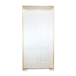 Cada puerta mide 18 pulgadas de ancho y 96 pulgadas de alto, lo que la hace adecuada para aberturas de puertas estándar. El marco de la puerta está elaborado con pino sin terminar, lo que ofrece una estética natural que se puede personalizar para que coincida con el estilo interior deseado. La puerta en sí viene con una capa base blanca, lo que proporciona una capa base suave y uniforme para pintar.