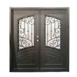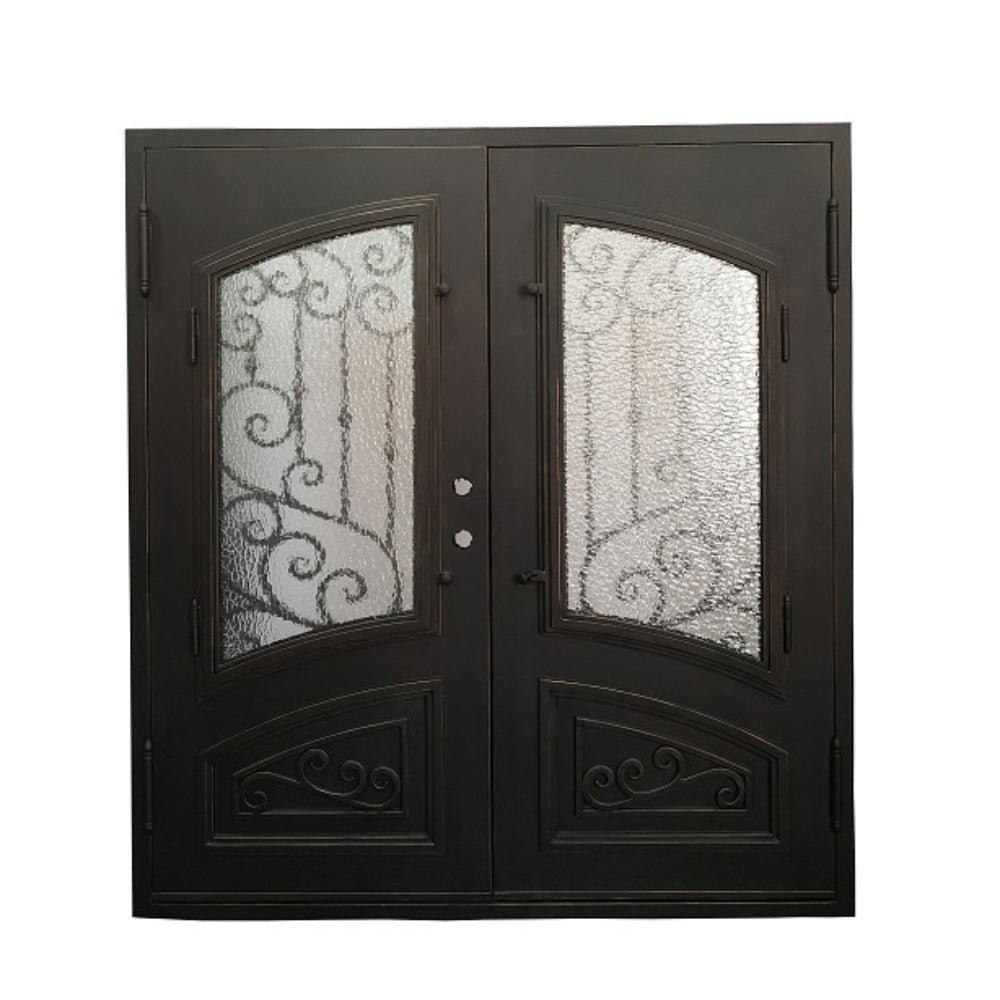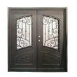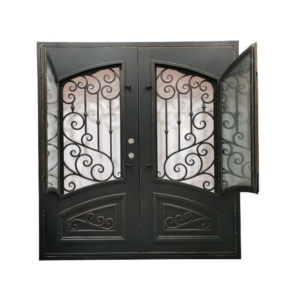 Puerta de entrada precolgada doble de hierro forjado Bette de 6 pies x 6 pies 8 pulgadas