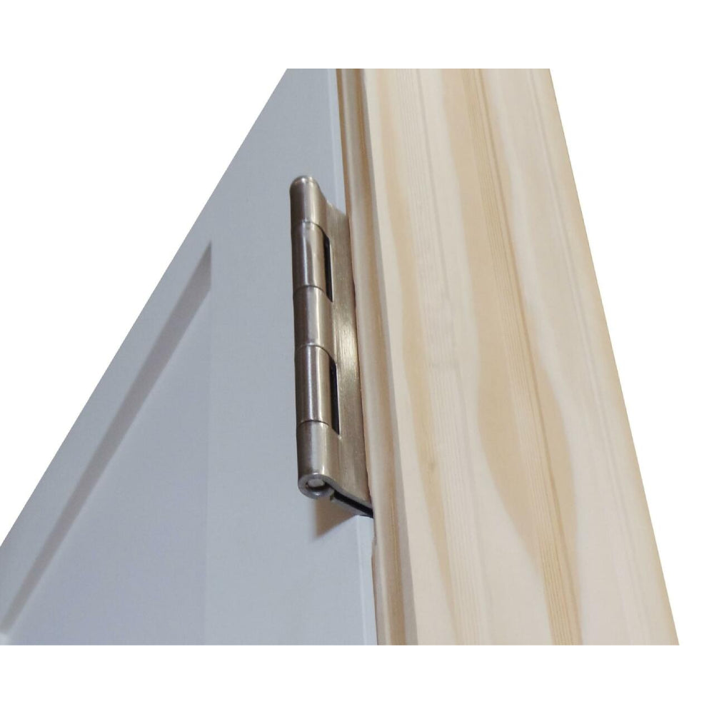 The door comes with a choice of satin nickel or oil rubbed bronze hinges, providing options for both aesthetic preference and coordination with other hardware in the room. Each door is equipped with three hinges to ensure proper support and smooth operation.