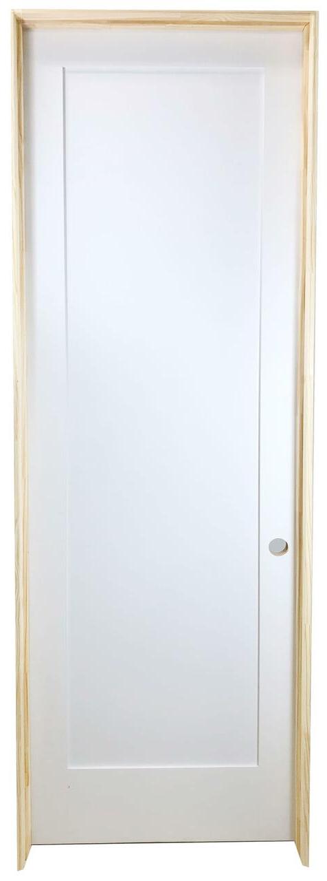 28 in x 96 in White 1-Panel Shaker Solid Core Primed MDF Prehung Interior Door