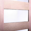 - Five rectangular glass panels arranged vertically in the center of the door
