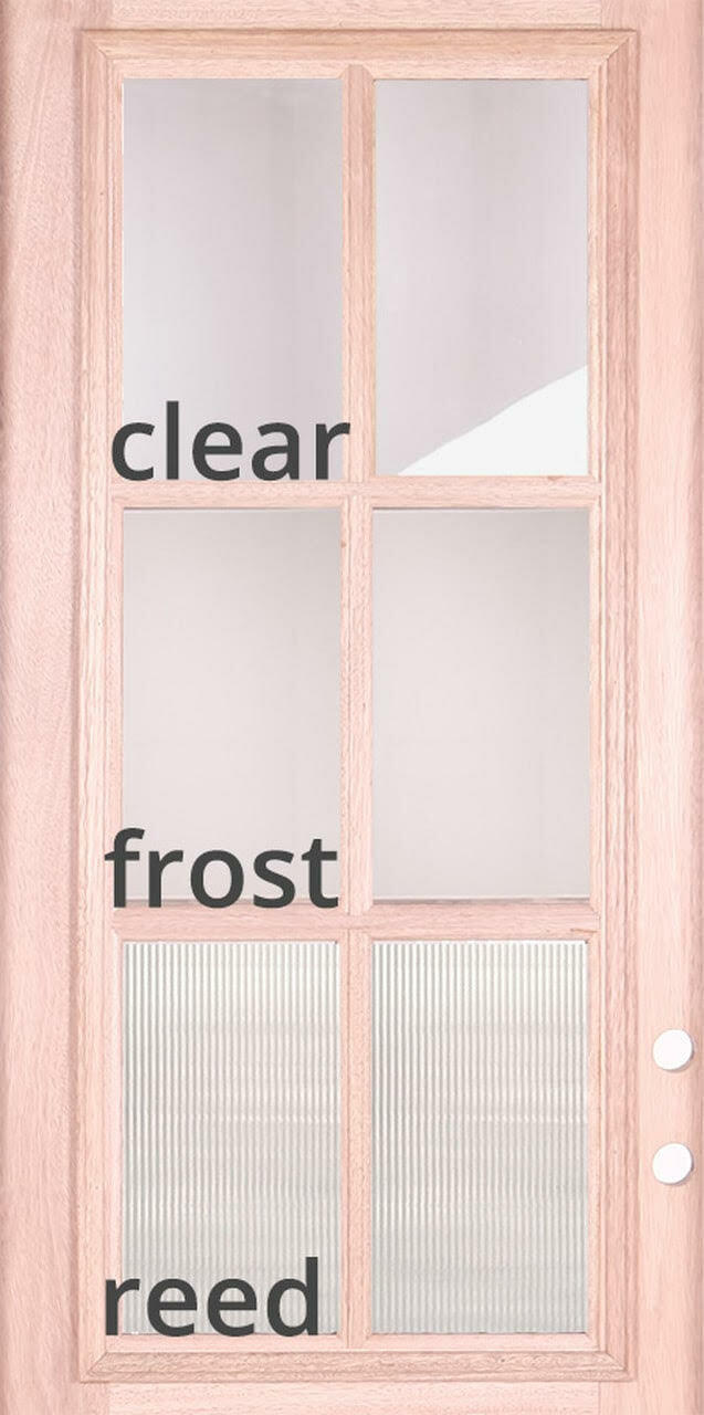 For the glass panels, there are three tempered glass options available: Clear, Reed, and Frost. These options give homeowners the flexibility to choose the level of privacy and style that best suits their preferences.