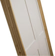 The door comes with an unfinished pine frame, allowing for customization and personalization to suit individual preferences. The frame is primed in white, making it ready for painting. This feature allows users to easily match the door with their interior decor.