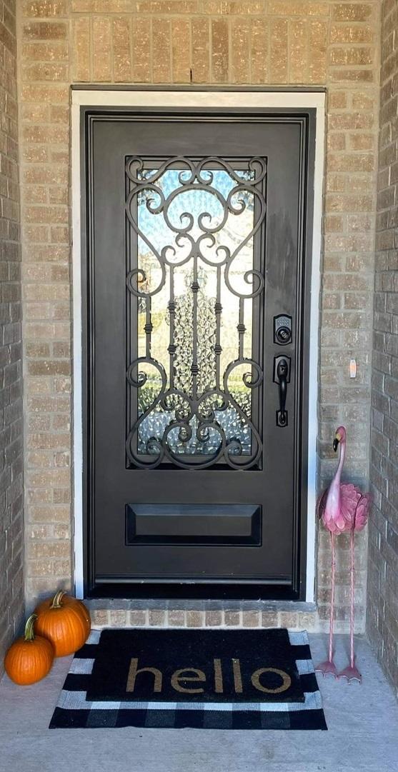 - Black wrought iron frame with threshold and weatherstripping to prevent drafts and moisture