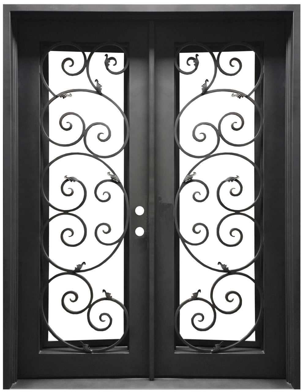 Lily 6/0x8/0 Exterior Wrought Iron Prehung Double Door